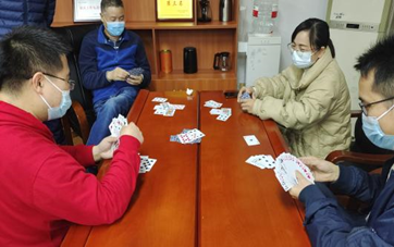 中华棋艺历史悠久,名家名局数不胜数,厚重的文化积淀更是让每个棋友坚定了对棋类项目的热爱。本次比赛设置了三类项目,分别是象棋、围棋和两副扑克拖拉机,共有十二名教师参与。比赛中,各选手们表现各异,有的落棋神速,有的则出牌谨慎。参赛选手冷静沉着地思考着每一步每一次出牌的策略,在比赛中斗志斗勇,充分展示才艺和思维能力。其中象棋竞争最为激烈。经过一下午的角逐,最终君光、田君、汪文龙、廖忠淼取得象棋比赛前四名;两幅扑克拖拉机比赛充分发扬了棋牌竞技精神,由田君、段若蒙、李康、祝闻取得前四名。本次比赛,为赛程添光添彩。