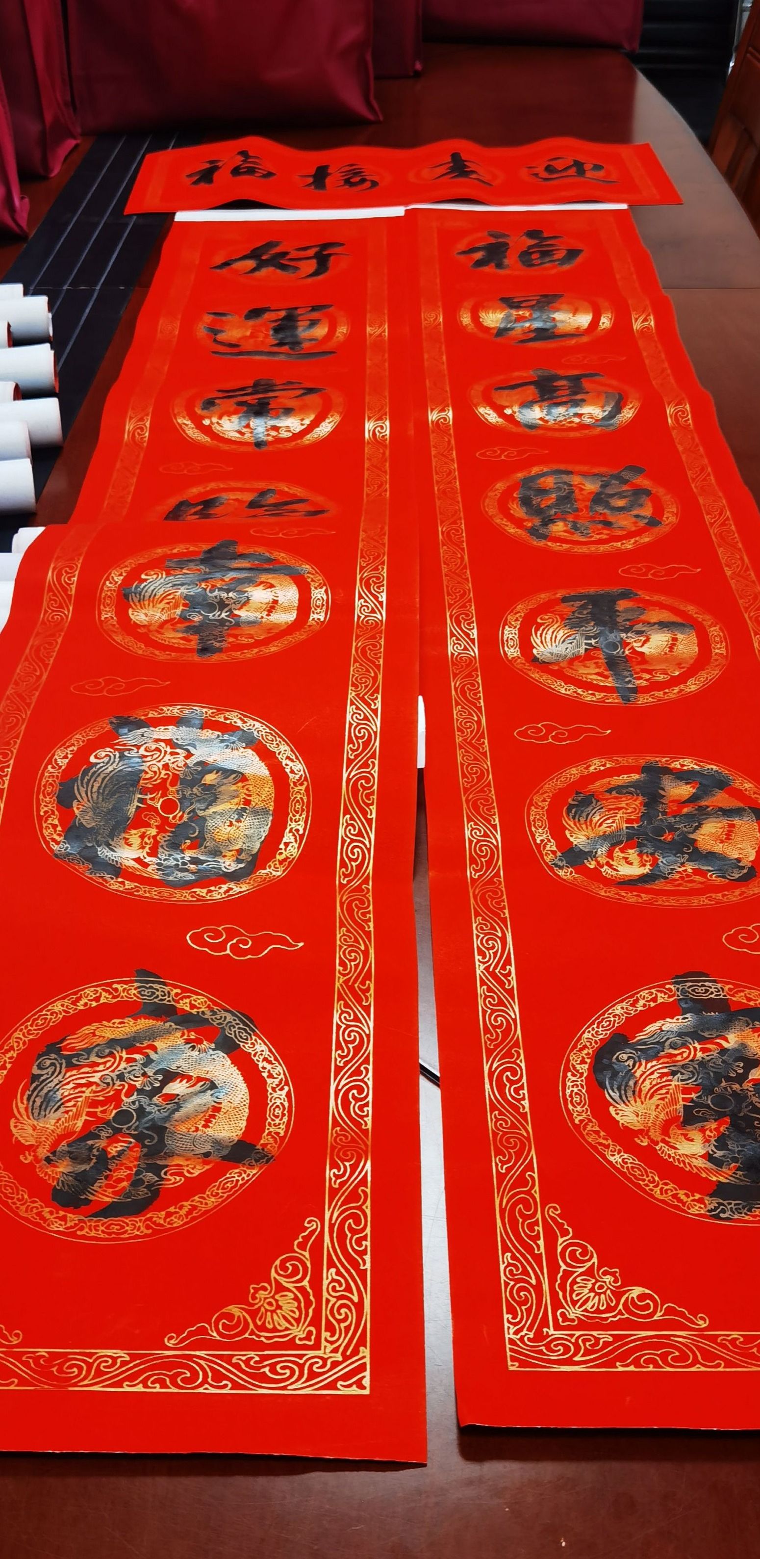 本次送春联活动由校工会主办、校教职工书画协会承办、校教师村业主委员会协办。校教职工书画协会的杨万江、杨继龙、李益民、宋跃、莫振轩五位老师,为全校教职工妙笔挥毫写春联。为了降低传染风险,本次活动采用线上的方式,老师们需提前在线上预订春联,同时还可以指定内容和写春联的书法家。