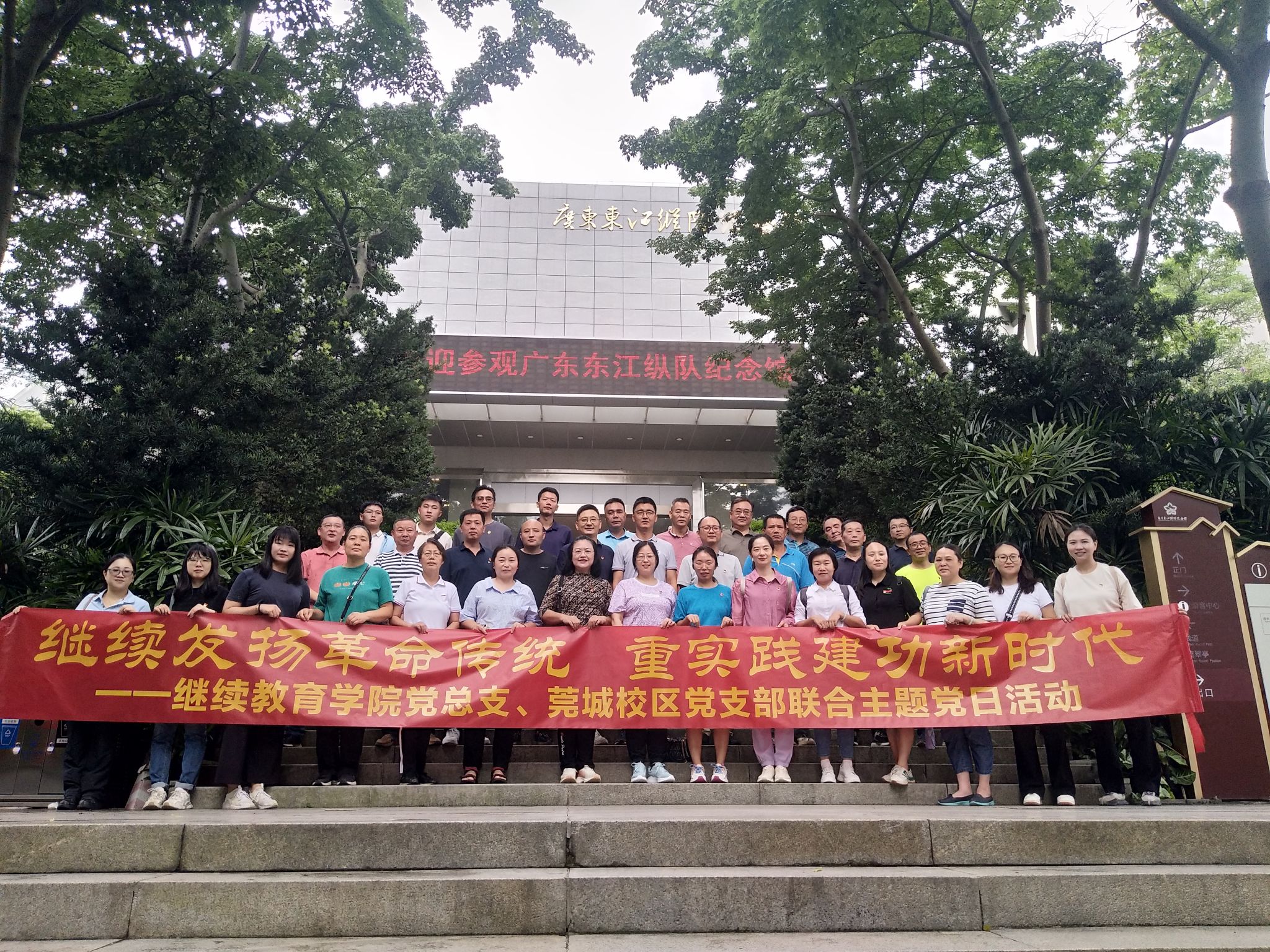 6月20日,莞城校区工联会组织继续教育学院党总支、莞城校区党支部联合开展革命传统教育主题党建+拓展活动。一行四十多人首先来到东江纵队纪念馆参观学习,重温入党誓词,坚定理想信念,凝聚奋进力量。参观结束后来到横岗水库户外营地拓展,进行了趣味比赛和游戏,气氛融洽诙谐。本次活动不仅提升了教职员工的精神和士气,也增强了莞城校区的凝聚力。