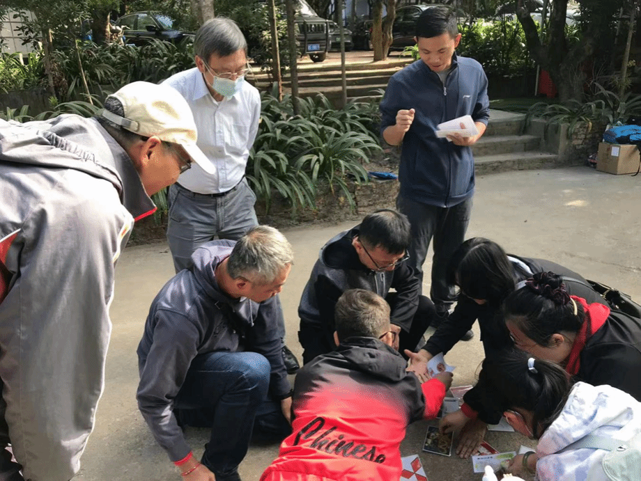 在活动开始,拓展教练用严肃又带点幽默的语言迅速点燃了教工们的热情,大家迅速组成了两个小队,群策群力设计队名、口号、队形、队旗,建立起相互信任的关系。随后,拓展训练正式拉开帷幕,内容包括“极速60秒”“击鼓颠球”“团队飞盘”三个项目,大家在挑战自我、齐力协作中体验着奉献、合作、勇于尝试带来的喜悦。项目结束后,所有队员围成一圈听教练讲解项目训练的目的和意义,并分享了个人收获与感悟。