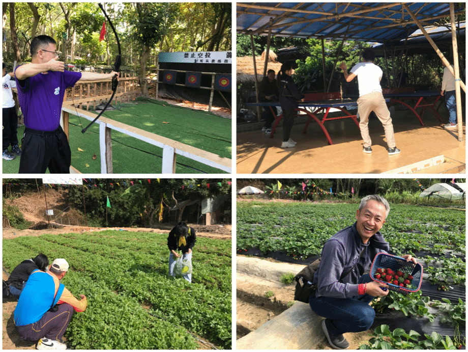 下午是分组活动时间,大家可以自由选择射箭、环湖骑行、桌式足球、KTV唱歌、趣味采摘等活动项目,放松心情、释放工作压力、与同事畅谈,感受自然、体会收获的喜悦。