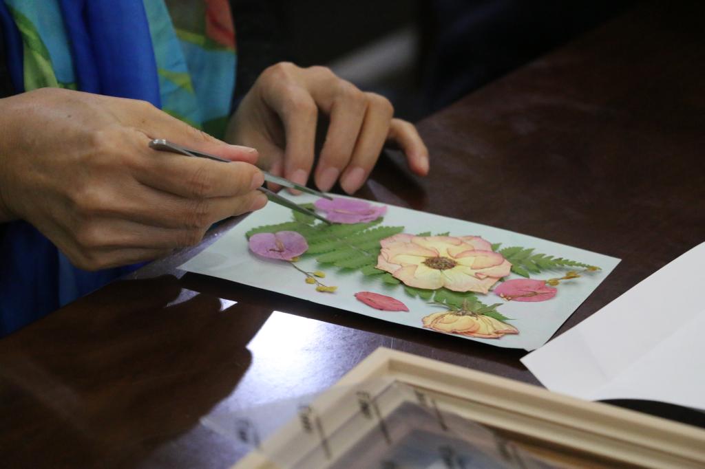 活动现场宁静而充满生机。大家从繁忙的工作中暂时抽离出来,放慢节奏,感受大自然的变迁,宁心静气构思自己的作品,小心翼翼地拈起花枝,拼成永不凋谢的春天,装饰自己的房间,也装点自己的心情。