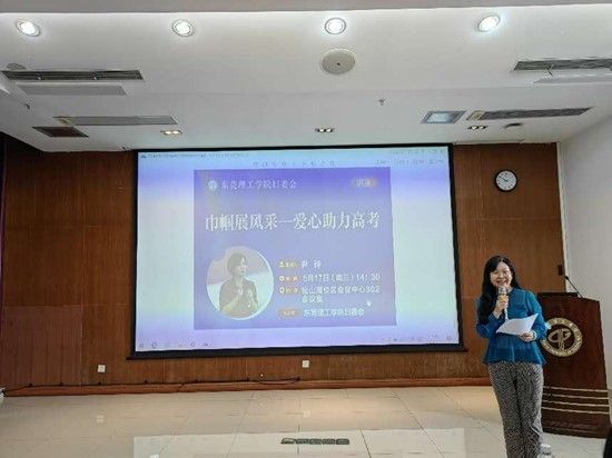“十年磨一剑,一朝试锋芒”,又是一年高考季。为让广大莞工子弟充分了解我校各专业具体情况,吸引优质生源,满足供需信息有效沟通的需求,5月17日,校妇委会、校工会女职委在会议中心302会议室举办了“巾帼展风采”系列讲座的首次活动,特邀中法联合学院副院长尹玲作为主讲嘉宾,为莞工的老师们介绍中法联合学院,爱心助力高考。活动由校妇委会、校工会女职委主任李润霞主持,介绍“巾帼展风采”系列讲座的活动宗旨和整体规划,同时欢迎女教工们通过各项渠道积极反映自己关心的话题,以便校妇委会、校工会女职委更有针对性地为大家提供优质服务。