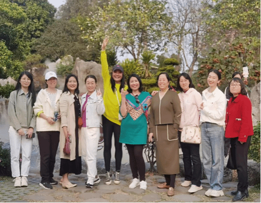 当日下午,大家先至东莞市植物园赏花踏青,享受春天的美好时光。在名树名花园内,万紫千红的花朵竞相绽放,宛如一幅生动的油画。女教师们穿梭在花的海洋中,不时驻足欣赏,用手机记录下这难得的美景。她们的脸上洋溢着幸福的笑容,尽情享受着大自然的馈赠。