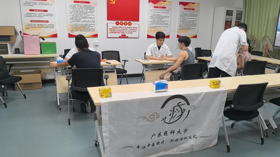 座谈会结束后,学院分工会联合学校莞逸社区党支部共同邀请到“广东医科大学爱痧志愿服务队”为学院老师们开展中医义诊理疗活动,老师们积极参与,反馈颇佳。