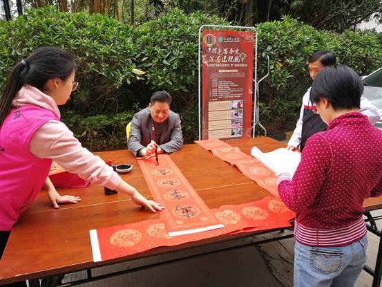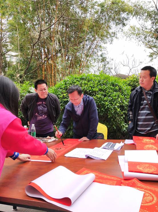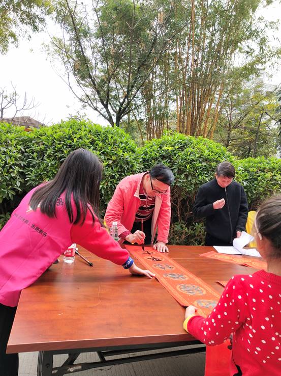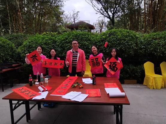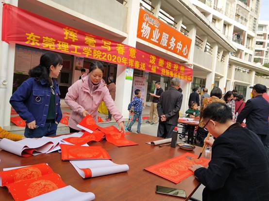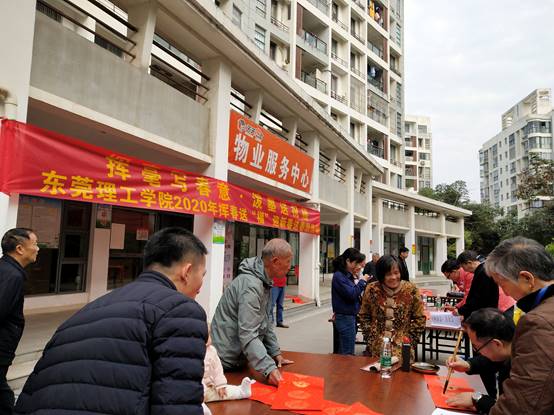 为了弘扬和传播中华优秀传统文化,推动社会主义核心价值观融入教师生活,促进我校的新型高水平理工科大学示范校建设,不断丰富广大教师的业余文化生活,营造温馨祥和的节日气氛,为广大教师送上温馨的新春祝福,由我校工会主办、校教职工书画协会承办、校关心下一代工作委员会及教育学院(师范学院)协办的主题为“挥毫写春意,泼墨送祝福”的 2020年挥春送“福”迎新春送春联活动于2020年1月12日在松山湖教师村业主活动中心举行。