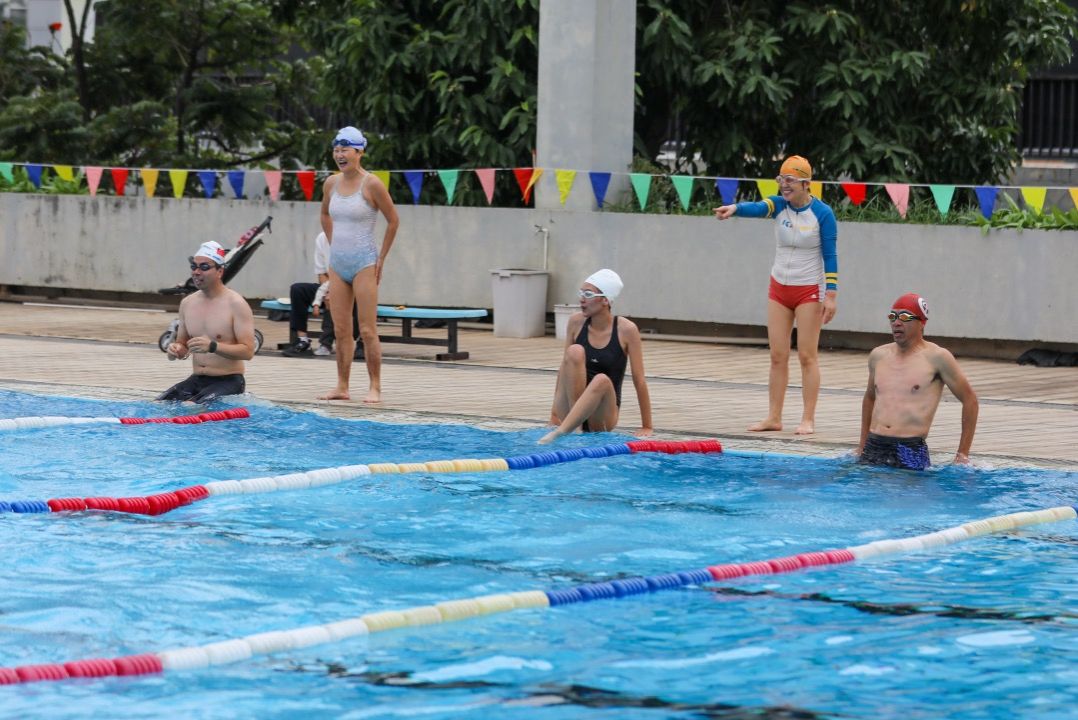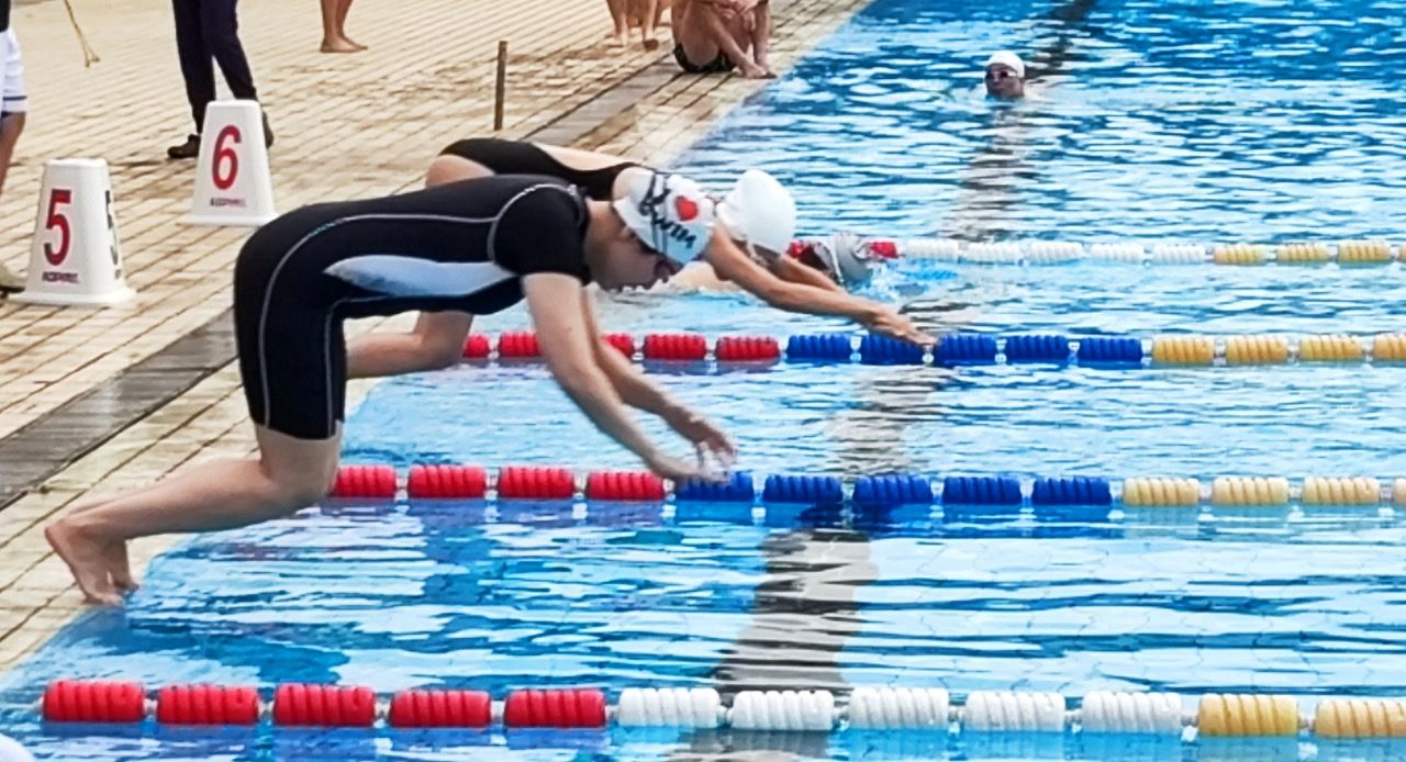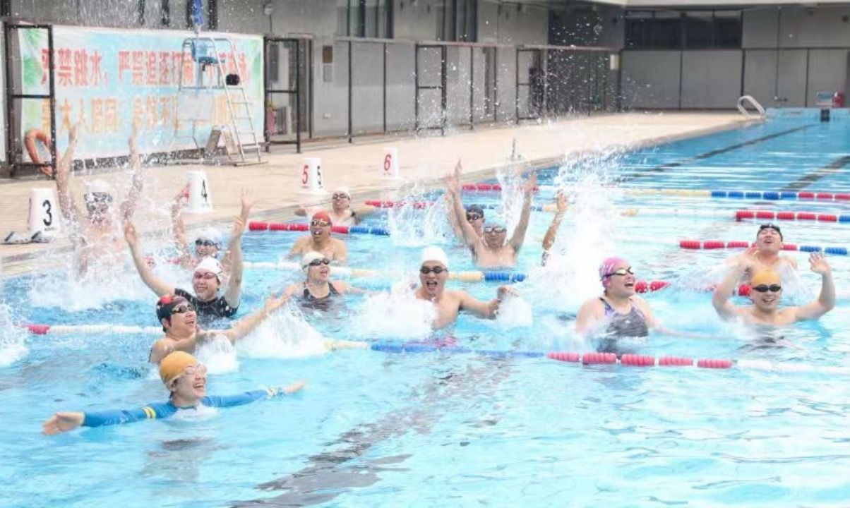 50米比赛后进行趣味水中摄影和航拍。各位老师在岸边各种花式入水,在水中激起片片水花,快乐的笑声在泳池荡漾,“我游泳、我健康、我快乐”的口号响彻泳池,虽是冬日,但仿佛回到盛夏。