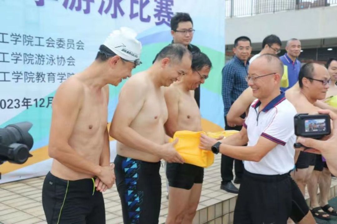 最后进行的是颁奖典礼,每位下水的“泳士”都是勇士,都是胜利者,由刘伟院长和程发良院长分别为每位泳士颁奖,并祝愿游泳协会越办越好。