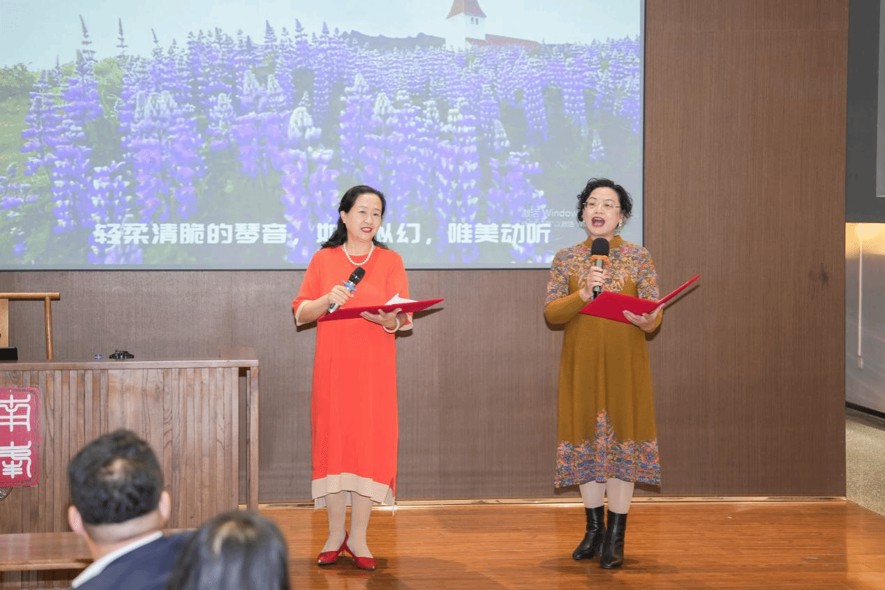 期间,李缨老师和广医王建军老师合诵的《红棉路上的郑书慧》更是把活动推向了高潮,这是一篇由松山湖一位语文老师原创的作品,讲述的正是松湖人自己的故事。邓磊老师的《秋天的怀念》让人落泪,杨万江、商伟华老师的朗诵抒发了强烈的爱国激情,成伟、邹胜美老师的朗诵则表达了对美好人生的憧憬,游春嫦老师唯美的表达、关力老师的动情演绎以及两位教工诵二代小朋友落落大方、声情并茂的表演都令人难忘,而来自中国散裂中子源的科研人员郭宇航则以独特的吟诵形式演绎了经典名篇《月下独酌》。