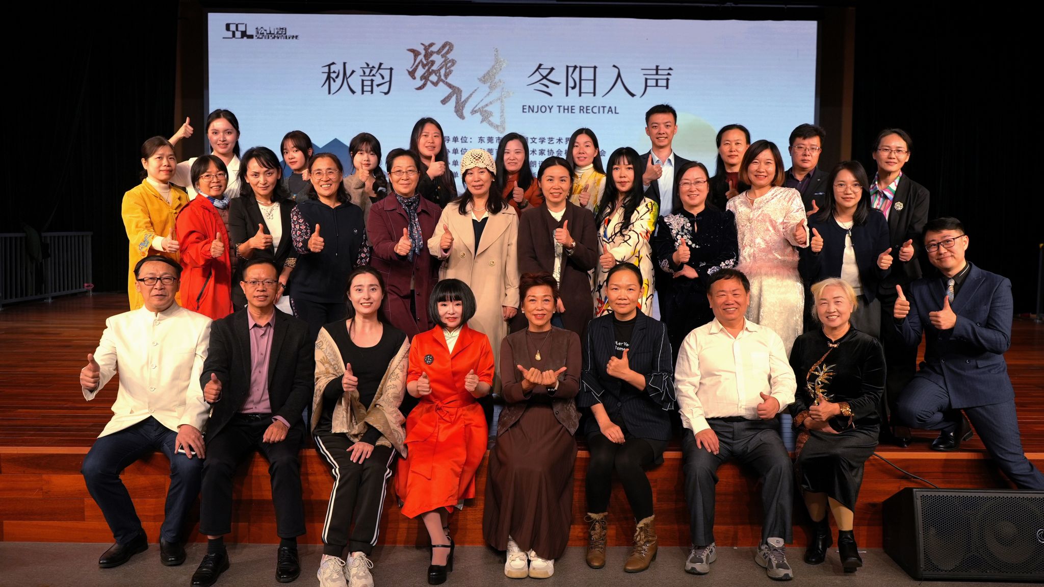 2025年11月18日晚7点30,由东莞朗诵艺术家协会松山湖分会、3044am永利集团官网朗诵协会联合举办的“秋韵凝诗,冬阳入声”朗诵沙龙在市青少年活动中心松山湖分中心精彩举行,为园区及周边镇街的广大朗诵爱好者提供了一个集交流、展示于一体的平台,共同感受诗文之美,朗诵之美。
