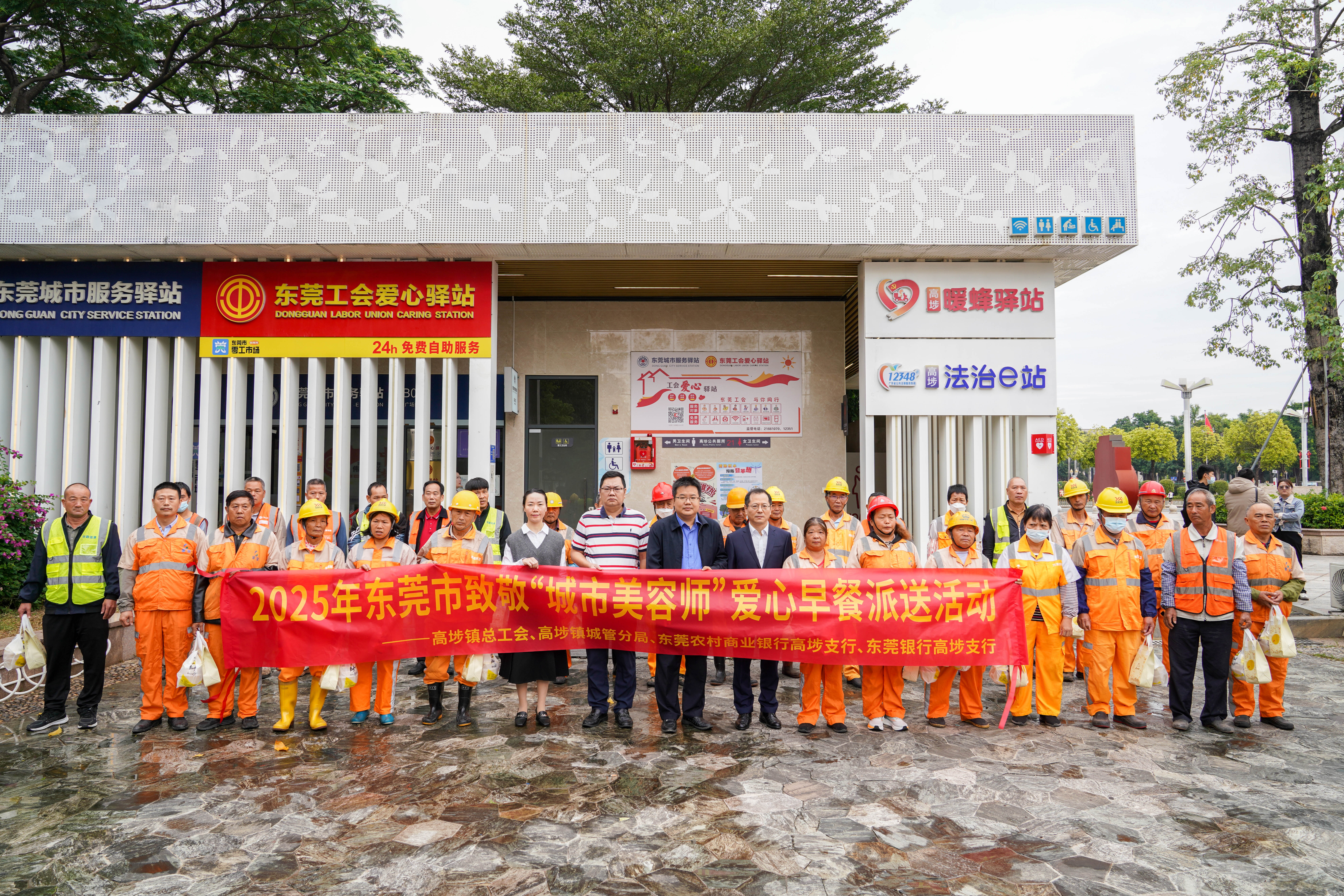 在10月26日广东省环卫工人节即将到来之际,一份专属的暖心福利正悄悄送达!10月23日,高埗镇总工会、城管分局携手东莞银行高埗支行、东莞农商银行高埗支行的“暖心伙伴”们,联合开展“致敬城市美容师”爱心早餐派送活动,向常年辛勤工作的“城市美容师”表达敬意与感谢。