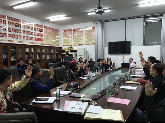 教职工代表们进行现场投票