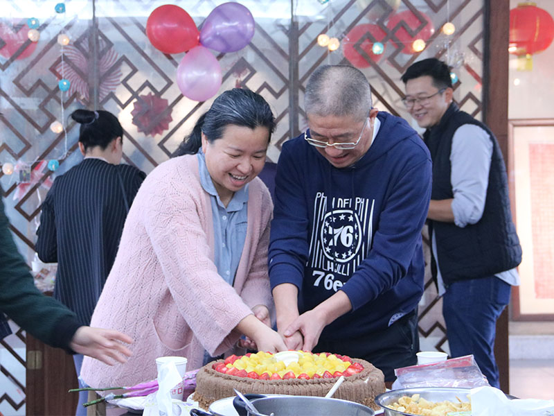 在文传学院院长田根胜,党总支书记阎江和工会专职副主席邹胜美向老师们表达了节日祝福后,男教师代表们向参加活动的全体女老师赠送鲜花并预祝妇女节快乐。鲜花赠送后老师们聚集于摆满美食的桌子。欢声笑语中分享着各具特色的各家精心准备的美食。此次活动还为文传学院靖辉老师和余秀媚老师准备了生日蛋糕庆祝了生日。