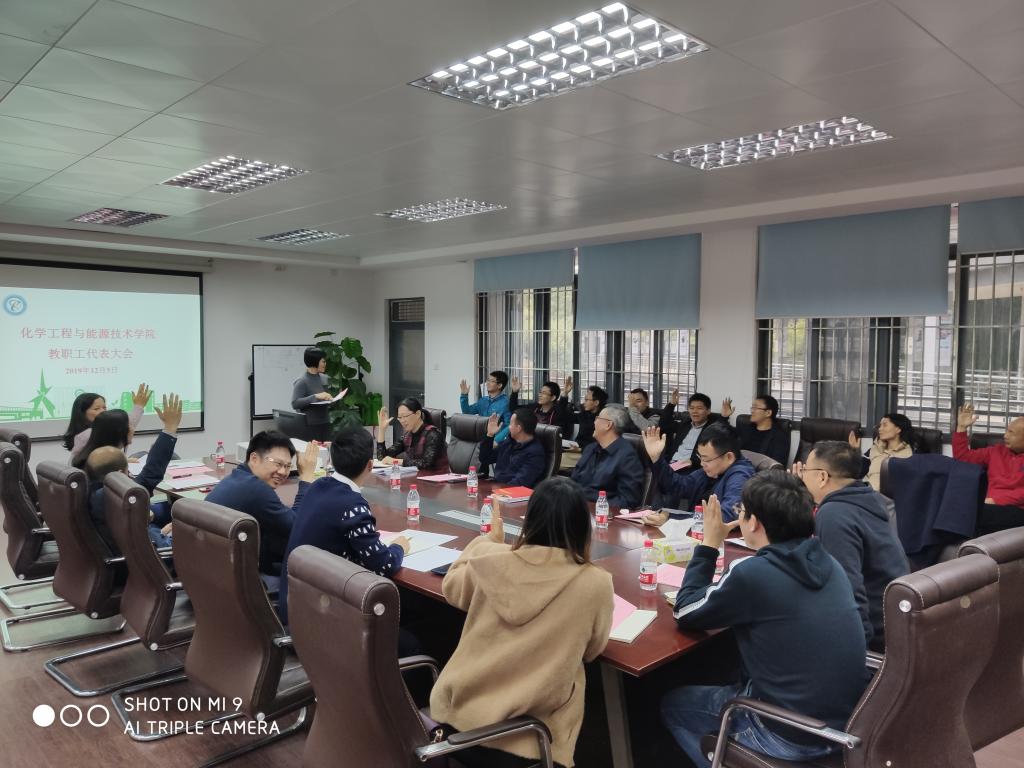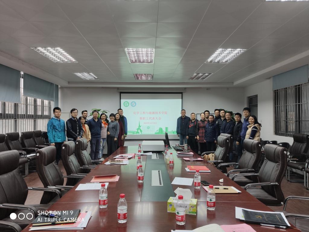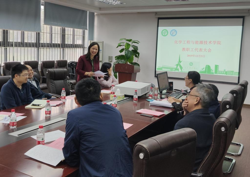 2019年12月5日下午,化学工程与能源技术学院2019年度教职工代表大会在综合实验楼12L103召开。会议由党委副书记柳卓君主持,化能学院党政领导班子成员及教职工代表出席会议。