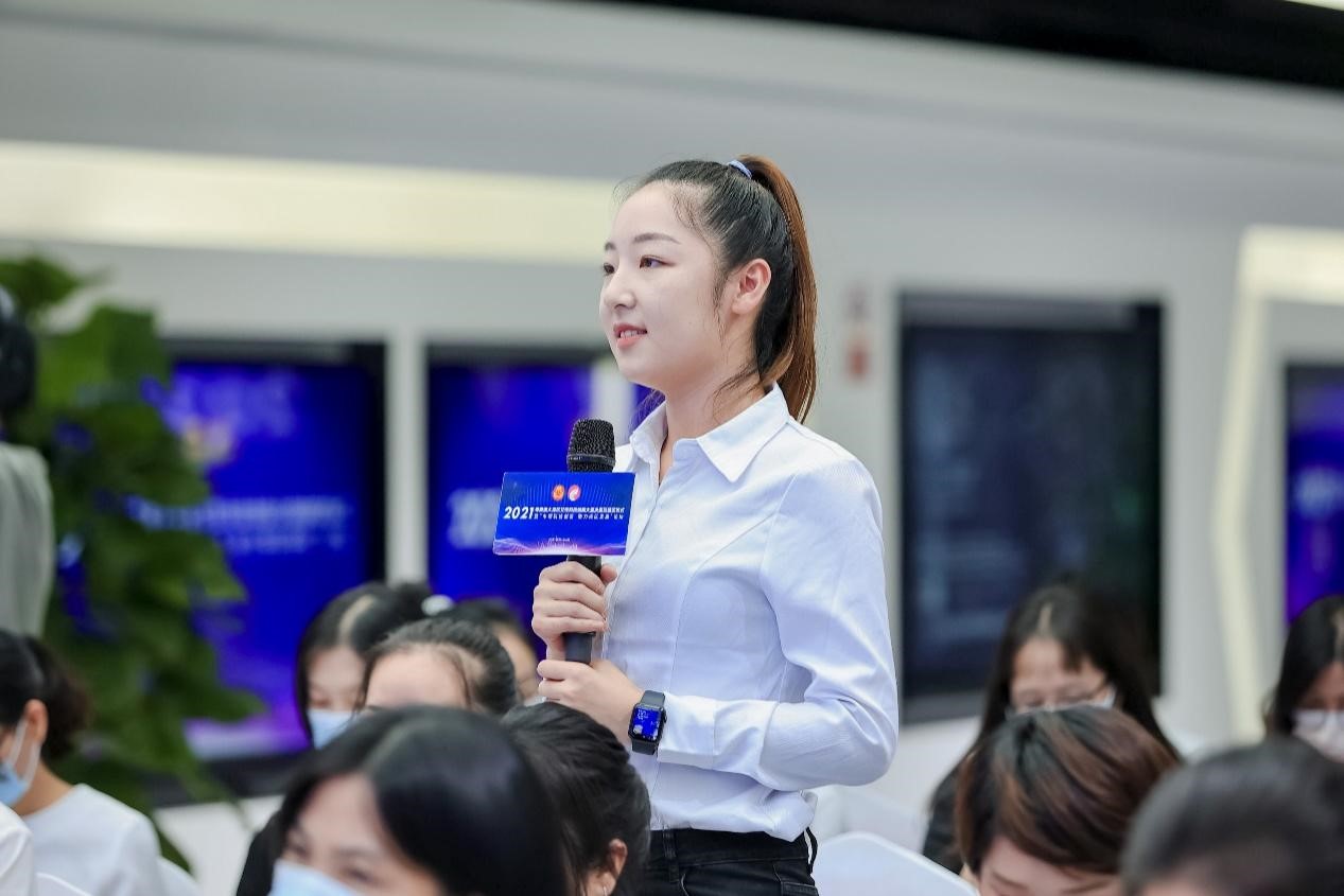 本次学习交流,我校师生代表深受鼓舞,深刻认识到女性科技工作者在粤港澳大湾区建设过程中的“半边天”作用。我校研究生王璐向北京交通大学信息管理系教授、东莞先知大数据有限公司总裁余旸提问,王子鑫同学也受到了相关记者的采访。