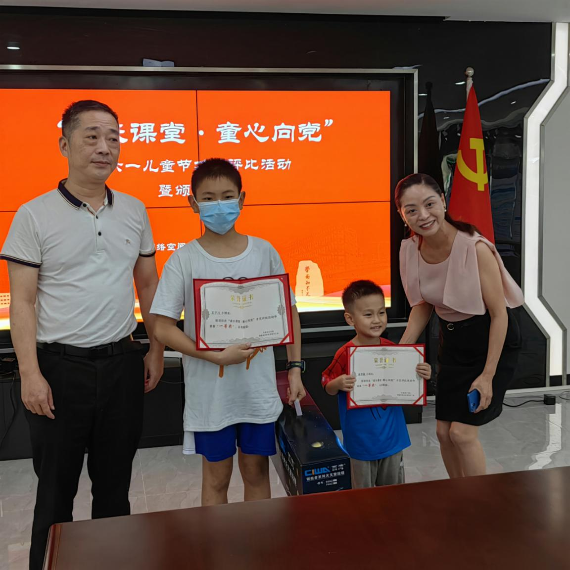 罗列副书记、肖倩主席与获奖儿童、家长合影
